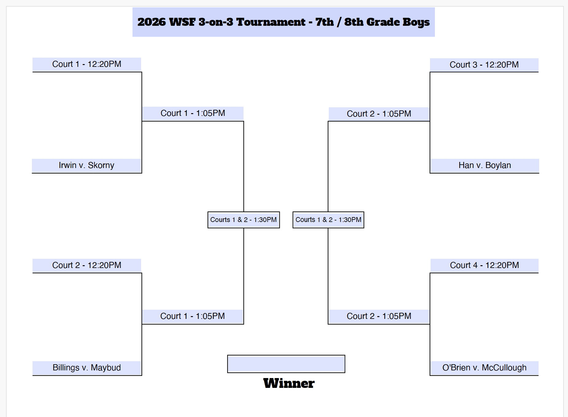 CHECK-IN: Please arrive 15 minutes before your court start time and check-in at the Little Flower Parish Hall.