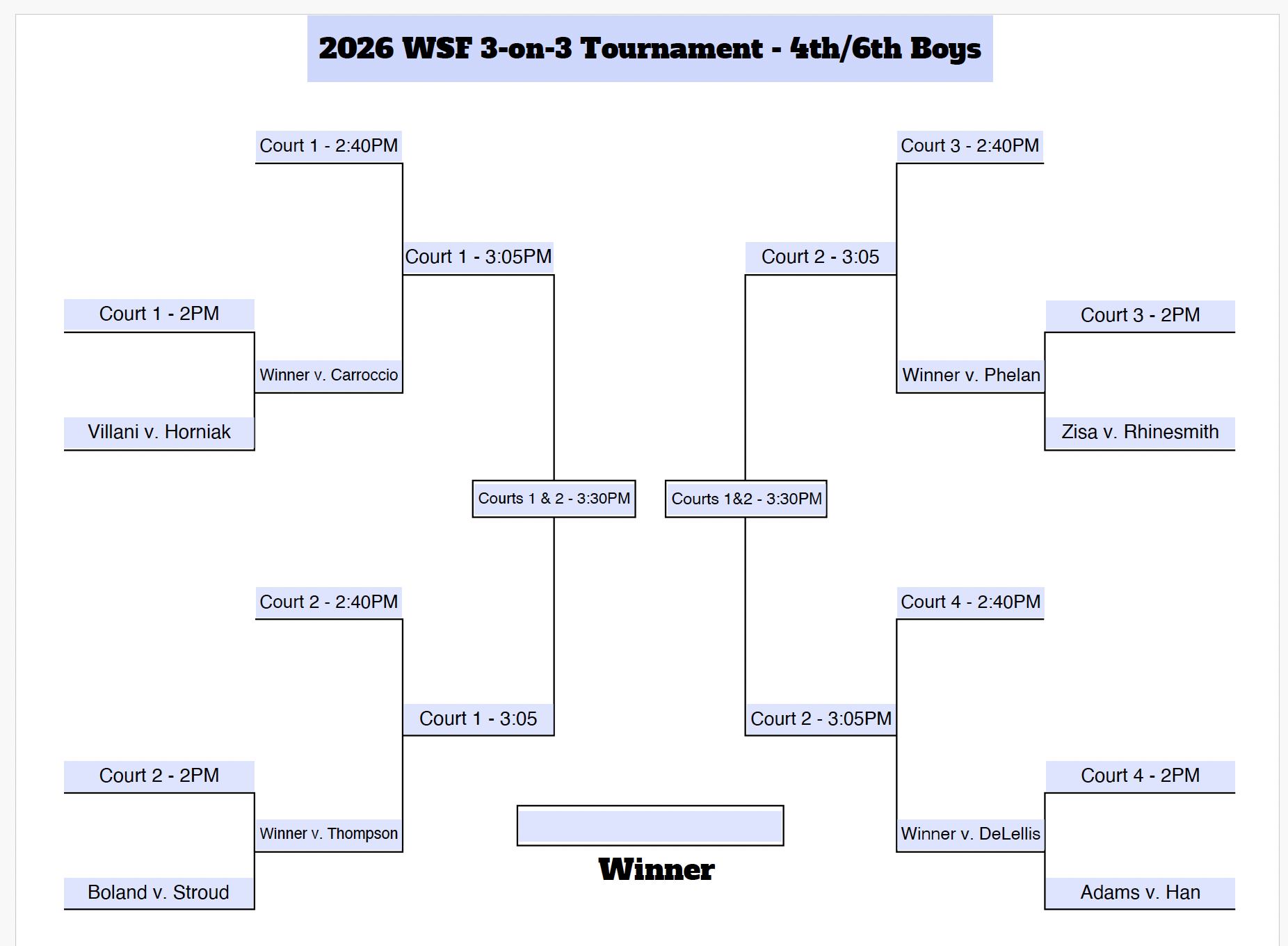 CHECK-IN: Please arrive 15 minutes before your court start time and check-in at the Little Flower Parish Hall.