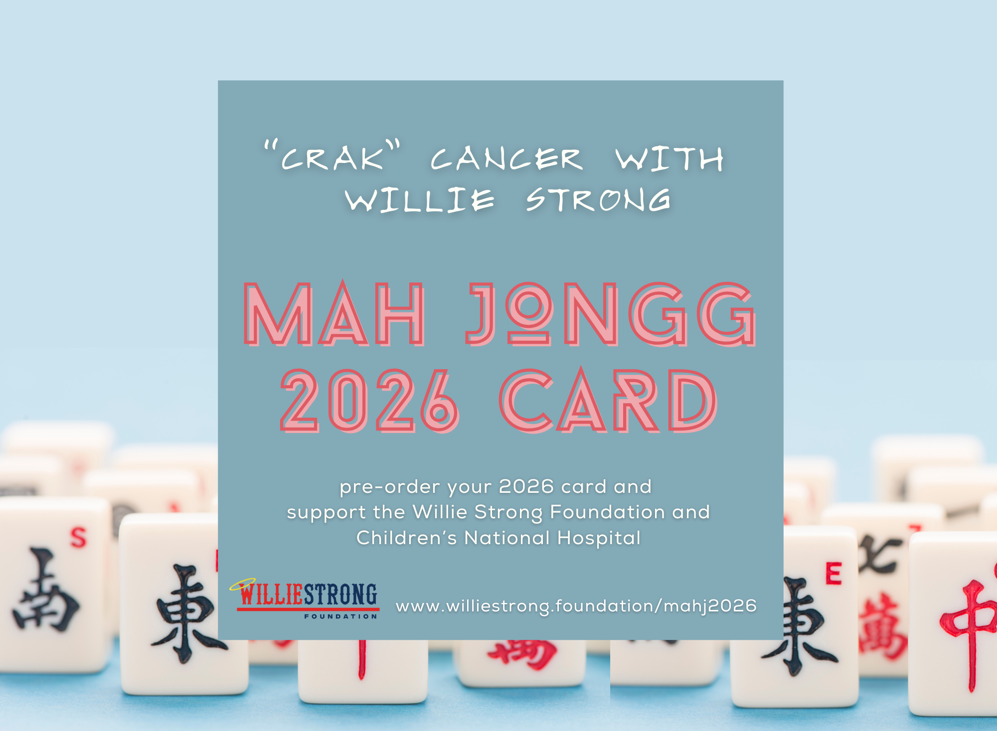 Pre-Sale of the National Mah Jongg League 2026 Cards is now open. Order the card by Jan 26 to receive your card directly from the National Mah Jongg League in April, 2026. Proceeds from sales of the cards will benefit The Willie Strong Foundation, which raises money for pediatric brain cancer research under the Willie Hughes Professorship at Children’s National Hospital in Washington, DC. $5 to $6 per card will be directly donated.